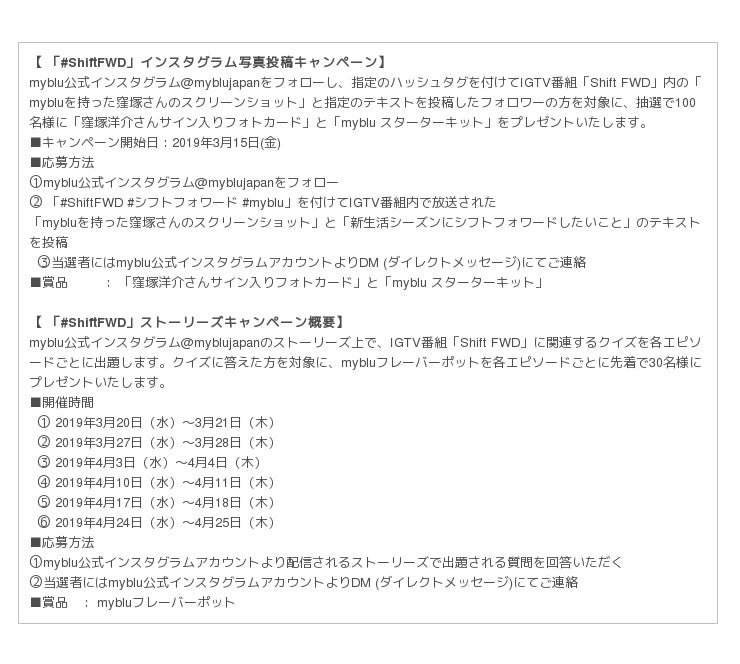 ■myblu×窪塚洋介さん ShiftFWD配信記念キャンペーン