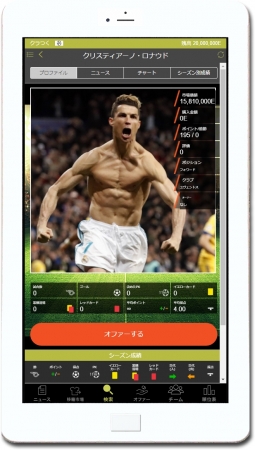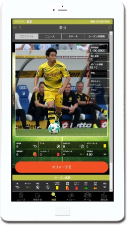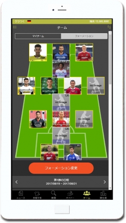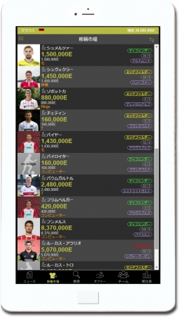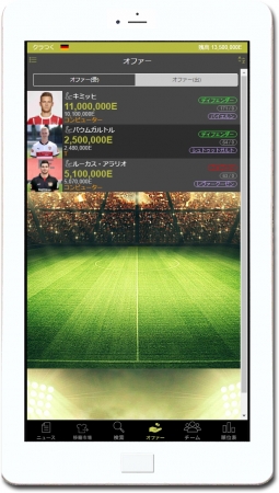 チーム編成後は、友達一緒のバーチャルリーグに加入し、与えられた予算の中で選手を売買し、獲得資金を増やしながら、チームを強くしていきます。選手の評価はリアルな試合での活躍とリンクしているため、活躍すればするほど選手の移籍市場の価格が上昇!もちろんミスや活躍できなかった選手は評価が落ちていきます。