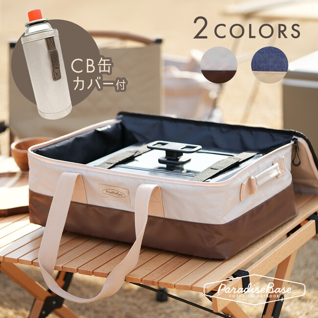 カセットガスホットプレートの収納に最適で、固定できるゴムベルトとカセットガスカバー付きです。