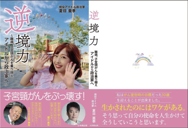 夏目亜季の初書籍である「逆境力〜難病、 子宮頸がんを乗り越えアイドルから政治家へ〜」が 11 月8日に全国書店にて発売することが決定しました。それに伴い10月30日に出版記念トークショーを開催させていただきます。