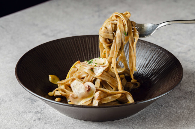 熟成したマッシュルームをふんだんに使用し、煮詰めてエキスを抽出しました。調味は少量の塩のみとシンプル。それゆえに、マッシュルームのうま味と香りを存分に味わえます。