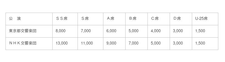 ♪入場料金(単位:円、消費税込み)