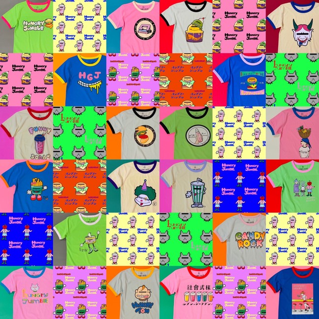 huNGry JumBlE カラフルなオリジナルリンガーTシャツ“huNGriNGeR” 20 種類を同時販売。好きなカラーのリンガーTeeとプリントデザインを選べるカスタマイズも可能