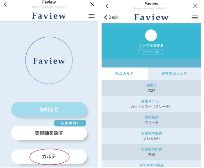 美容室での個別カルテをお客様に共有可能に。Faviewの新機能追加。