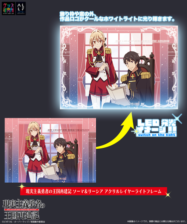 物語が佳境を迎えているTVアニメ『現実主義勇者の王国再建記』のビジュアルを全く新しい新機軸のハイクオリティラグジュアリーアイテム『アクリルレイヤーライトフレーム』にて具現化。