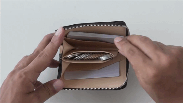 必要なものがしっかり入る容量を確保しながら無駄を省いた設計で薄さも意識しながら試行錯誤して今回の財布の形に仕上げました。