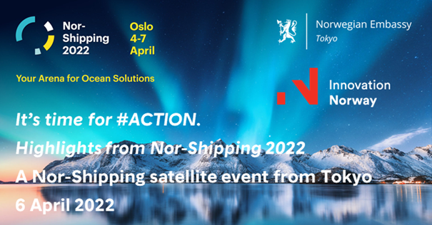 ノルシッピングは、ノルウェーのオスロにて隔年で開催される国際海事展・会議で、世界の海事産業にとって最も重要な会合の場の一つです。2022年は4月4日から7日まで開催されますが、今回は日本からの直接参加が制限されたため、駐日ノルウェー大使館がノルシッピングおよびイノベーションノルウェーの協力のもと、日本・ノルウェー両国のパートナー向けにハイブリッド(対面とオンライン)のサテライトイベントを開催することになりました。本イベントにより、今年のノルシッピングのハイライトを共有し、海洋 ACTIONのアジェンダに貢献すること、ゼロエミッション船・持続可能性・自律航行や海事産業の未来に関する知識やネットワークを共有することを目指します。