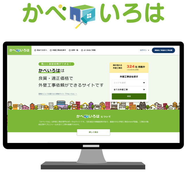 「やねいろは」を運営していく中で、外壁に関しても同様のニーズに対応できるよう、姉妹サイトである「かべいろは」を2020年より運営しています。