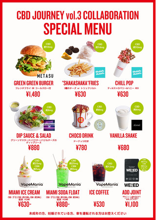 CBDを活用した各種オリジナルコラボメニューを期間限定で体験できます。