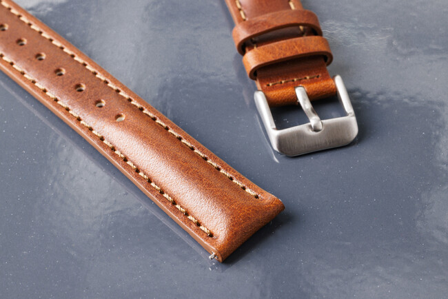 風合いが良い牛革ベルト。オイルレザーはしっとりとした手触りと美しいツヤを楽しめます。革の表情を生かすオイル仕上げなので使っていくうちにあなただけの風合いや柔らかさに変化します。