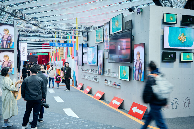 IT技術を活用し、空間やデジタルサイネージと連携したアートペーパーバッグ“PLAYBAG”を展示。