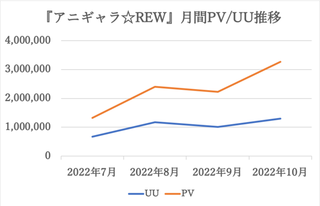 アニギャラ☆REWは2022年8月に240万PVを突破したばかり。にもかかわらず、それから約2ヶ月で325万PVを突破するという快挙を見せた。