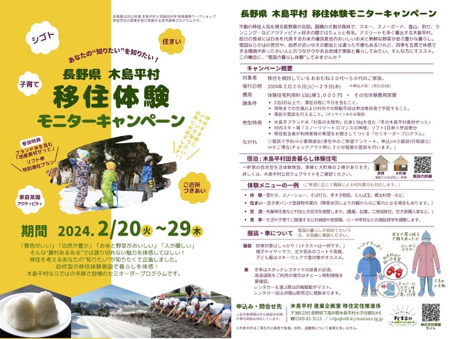 【2024.2.20〜29開催】長野県木島平村で「移住体験モニターキャンペーン」を実施します。〜あなたの“知りたい”を知りたい!〜