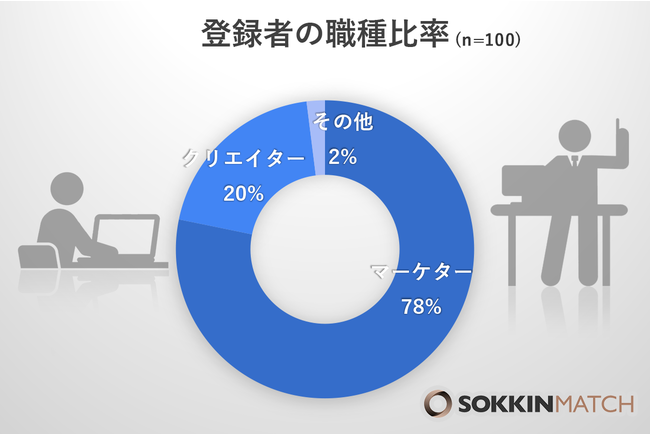 マーケター・クリエイターに特化した複業人材マッチングサービス「SOKKIN MATCH」の直近1カ月の登録者属性データの傾向を公開!47%が職種経験年数11年以上の経験豊富なマーケターが登録。