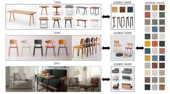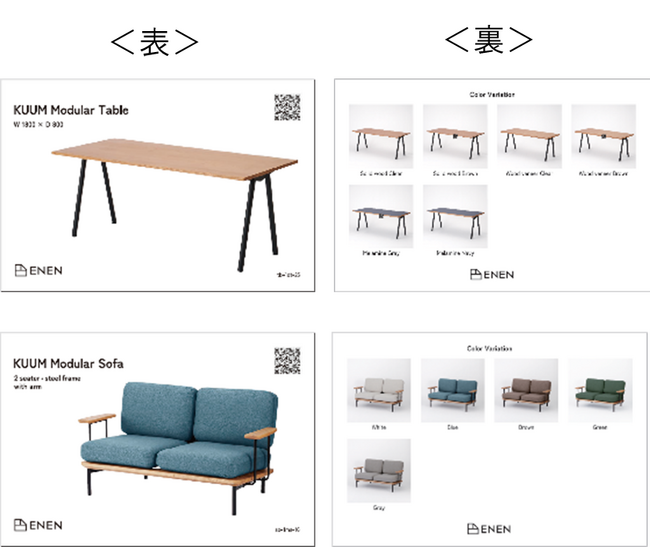 ブランドビジョン「家具で生活を楽しくする」のもと、約50年に渡る既存事業※で培ったノウハウを活かし、スマートな生活を実現する機能性と、生活の変化にともなう様々なタイミングで導入しやすい普遍性のあるデザインを追求しています。お使いの家具にも馴染むよう、シンプルでありながら、それでいて、どこか存在感を感じられるデザインやカラーバリエーションを採用しています。 最新のXR技術を導入し、お客様がクリエイターとなり、気軽で楽しい家具選びや購入体験の提供を目指します。また、持続可能なサイクルの実現に向け、可能な限り環境負荷の少ない素材と生産方法を採用するなど、不要になった家具の引き取り、再生・再販売サイクルの構築にも取り組んでまいります。 ※ENEN株式会社は、店舗設計施工および店舗什器製造販売大手の株式会社店研創意の新規事業として発足後、2022年10月に子会社として設立しました。 ■「ENEN」を代表するオリジナルのモジュラー家具「KUUM(クーム)」シリーズについて 「KUUM」は、「ENEN」の想いやブランドコンセプトを体現するオリジナルのモジュラー家具※です。 価格の二極化が進む家具業界において、「買い替えた方が安い」ことに合理性を感じ、生活や好みの変化で買い替える選択肢が一般的です。一方で、持続可能な社会の実現に向けて、「使い捨て社会」から「循環型社会」への転換が求められています。そこで、当社は、「環境に優しく、コストコンシャスで、ライフスタイルに合わせて長く使い続ける家具」の提供を目指して、「KUUM」を開発しました。 豊富な素材と形状からライフスタイルに合わせて自由に組み合わせることができ、スマートな生活を実現する機能性、長く使い続けられる耐久性、お使いの家具とも馴染む普遍的なデザイン、商品の経年劣化に伴うメンテナンスや修理のしやすさが特徴です。チェア、テーブル、ソファの3カテゴリーから販売開始し、順次別カテゴリーを展開予定です。 ※天板や脚など素材を選んで、パーツを組み合わせて作り上げていく家具を指す。建築材料・什器・家具などの規格化された組立てユニットであるモジュールに由来。