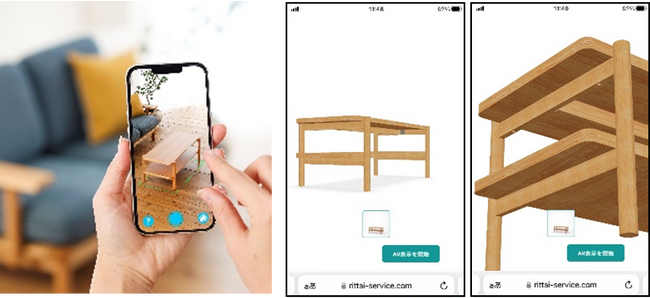 AR CAMERA -AR体験で家具を試し置き- 実際の部屋で家具を配置したい場所に、スマートフォンやタブレットをかざし、AR技術を使って、3Dデータの家具を実物大で映し出すことができます。既存のインテリアとのサイズ感やカラーコーディネーションなど相性をチェックすることができます。