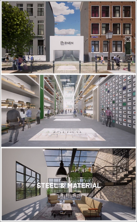 朝日、夕景や夜景など、実際の外光に近い状態を再現するフェイクウィンドウ(高輝度の液晶デジタルサイネージ)を設置します。通常時は、実時間に合わせた景色を設定していますが、タブレット操作で時間帯を切り替えて、屋外の光によるカーテンの表情や相性を試していただけます。 上記以外にも、リアル店舗だからこそ楽しめる、ENENオリジナルの家具選び体験コンテンツを展開し、「家具選びのNEW BASIC」を提供します。