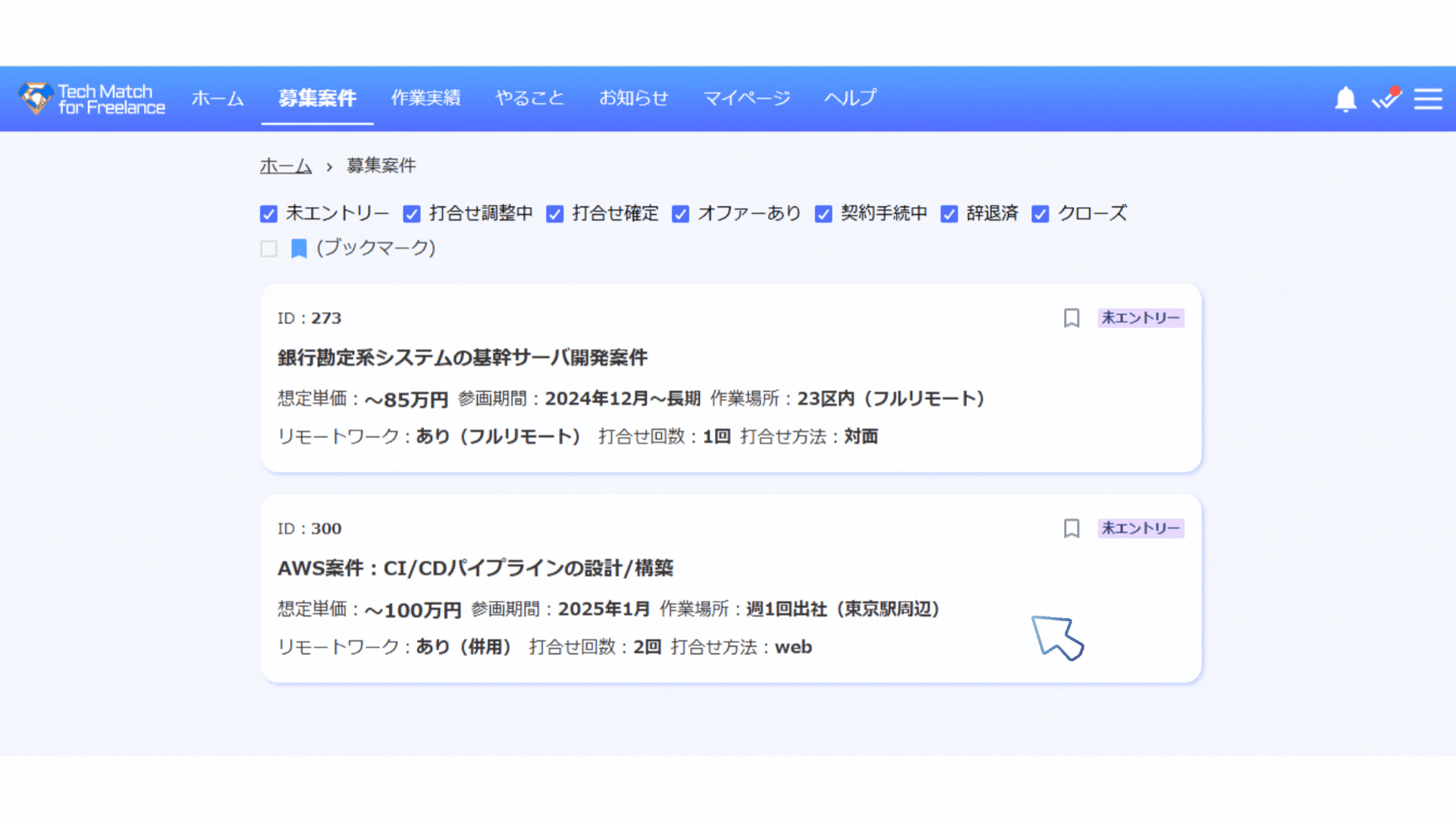 3.エントリー中の案件状況を一画面で一括管理
