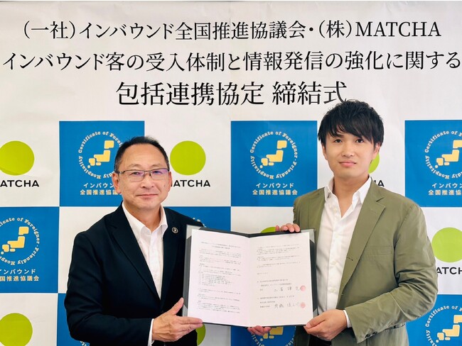 「インバウンドに優しいおもてなし認定証」制度を全国展開する一般社団法人インバウンド全国推進協議会(大分県、会長:二宮謙児)と、訪日外国人向けメディア「MATCHA」を運営する株式会社MATCHA(本社:東京都中央区、代表取締役社長:青木優)は、訪日外国人旅行者の受入体制と情報発信の強化を全国的に連携して取り組むための「包括連携協定」を締結しました。