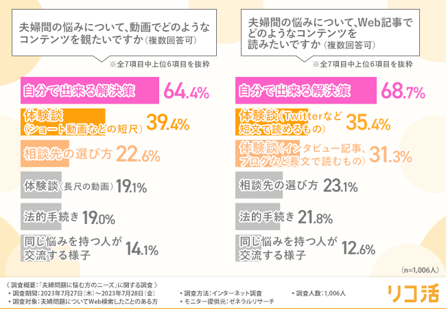 夫婦問題について「自分でできる解決策」を知りたい方が最多