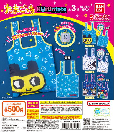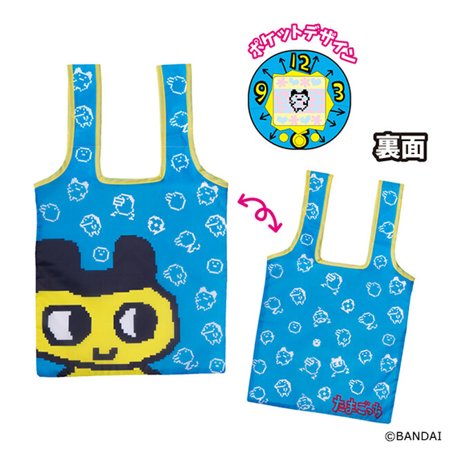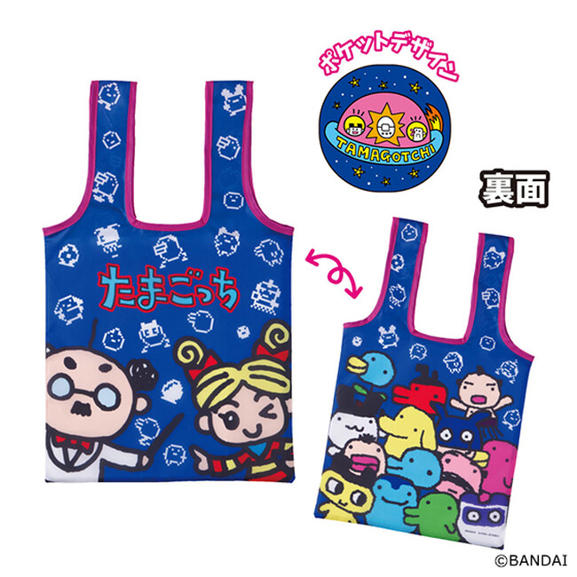 本商品は、本体部分を内側のポケットにくるんと収納して持ち運びができる便利な「くるんとーと」に、「たまごっち」のデザインを施したトートバッグです。