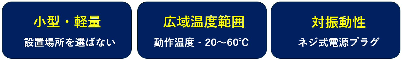バス、タクシー、トラックや工場などで使用されるLTEルーターには堅牢性、広域温度範囲と対振動性が求められます。特に一般的な電源プラグは振動や衝撃により外れてしまうことがあります。また、無人の遠隔地などに設置されている場合は通信が途絶えてしまい、復旧には時間とコストがかかります。TC700Jは小型・軽量でありながら堅朗で電源プラグがネジ式のため、抜けにくいことが特徴です。【仕様】