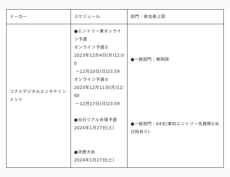 事前リアル会場予選:2024年1月7日(日) 10:30〜20:00