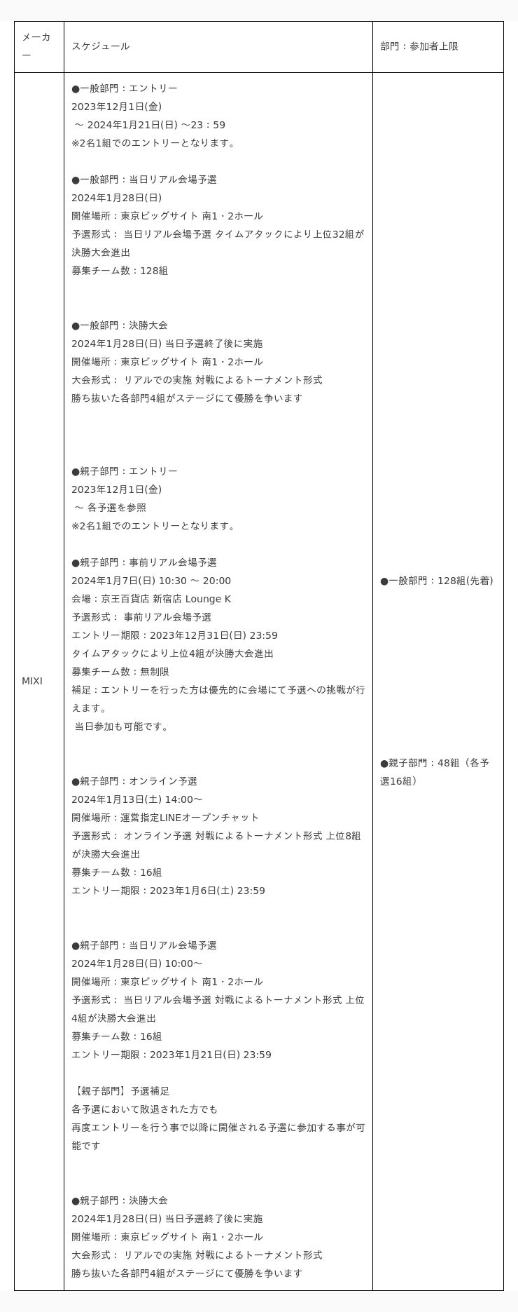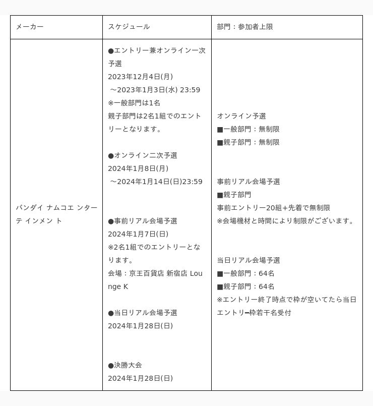 エントリー :2023年12月1日(金) 〜 各予選会1週間前 23:59