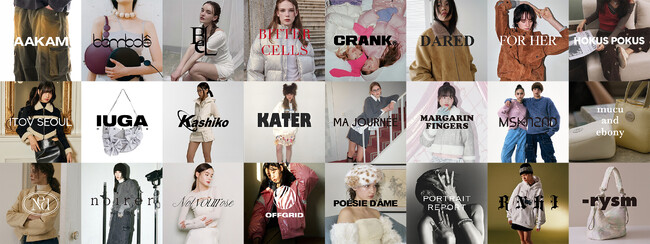 IVEのウォンニョンをはじめとしたK-POPアイドル着用で話題の「not your rose(ノットユアローズ)」や日本ではHANAでしか買えない初上陸バッグブランド「bambole(バンボレ)」、 12月に新規入店したY2Kムードの「Kashiko(カシコ)」など、25ブランドが参加する。