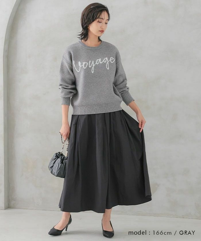 最後に、シンプルコーデに合わせやすい柄・ロゴニット。シンプルながらロゴでアクセントを効かせたアイテムは、1枚でも、重ね着でも活躍します。例えば、ジャケットのインナーに使って柄をチラ見せ、あるいはデニム×スニーカーで休日コーデに。無地のニットが定番・・・という方も少なくないはず。これではどこかトレンド感に欠け、老け見えの原因に。ロゴデザインもニットなのでロンTなどと比較すると若作りすぎず、大人っぽい印象で着こなしのハードルも低め。ベーシックだからこそ“使える”アイテムはこの冬のワードローブに必須のアイテム。