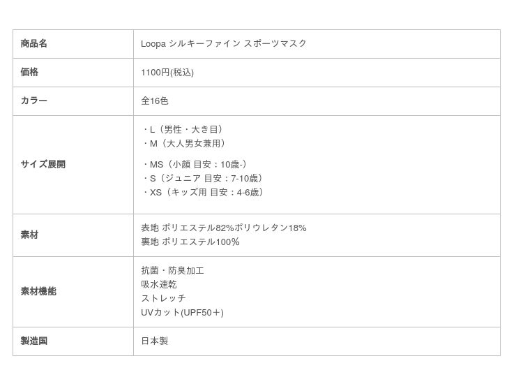 株式会社アイロックス(東京都渋谷区)が展開するヨガ・フィットネスブランドの「Loopa ルーパ」の「スポーツマスク」、カラーバリエーションとサイズがさらに増えました。