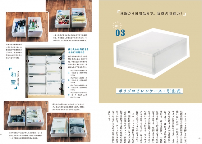 梶ヶ谷家の無印良品収納術をはじめ、組み合わせ次第でいろいろな使い方ができるオープンシェルフの収納アイデア、本当に使える無印良品アイテムなどを多数掲載しています。子どもがいる家庭や片付けが苦手な人でも実践しやすい、家族みんなが暮らしやすくなる収納のヒントが詰まった一冊です。