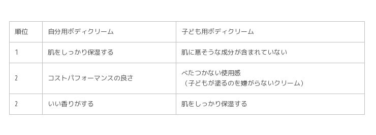 【働くママが、ボディクリームを選ぶ時の重視点 BEST3】