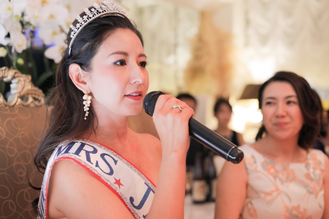 今回の最終選考会では前日に出されたテーマに基づき全員が3分間のスピーチをすることになっていた。そのテーマは、「ミセスクイーンファイナリストとして10月31日までにできる社会貢献」。大塚まきさんは、そのスピーチの中で10月の国際ガールズデーにちなんで、「これから社会に出る女子学生を対象としたセミナーの開催」を宣言した。
