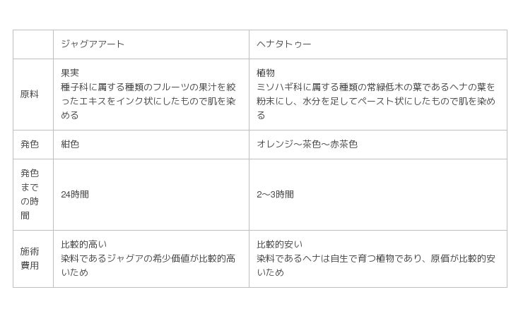 (参考)ジャグアアート、ヘナタトゥーの比較