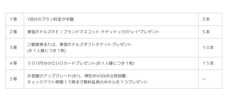 本プランでご予約のお客様限定で、チェックインの際にガラポン抽選に挑戦!1等はプラン料金がなんと半額に。そのほか、東急ホテルズREIブランドマスコット テディドッグの“レイ”(写真)や、ホテルギフト券、QUOカードなどのお楽しみプレゼントがプランご利用のお客様全員に当たります。ご夫婦や親しい方、おひとり様の令和の旅にどうぞご利用ください。