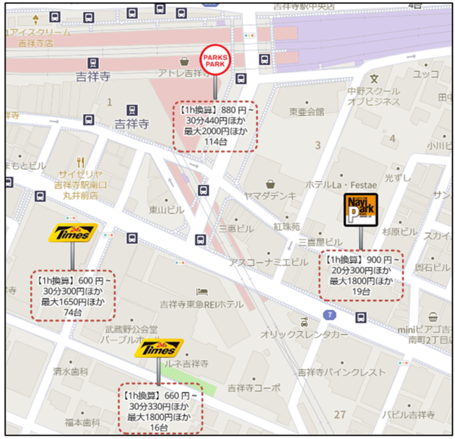 またコインパーキングでは、料金情報や駐車可能台数などが表示されます。