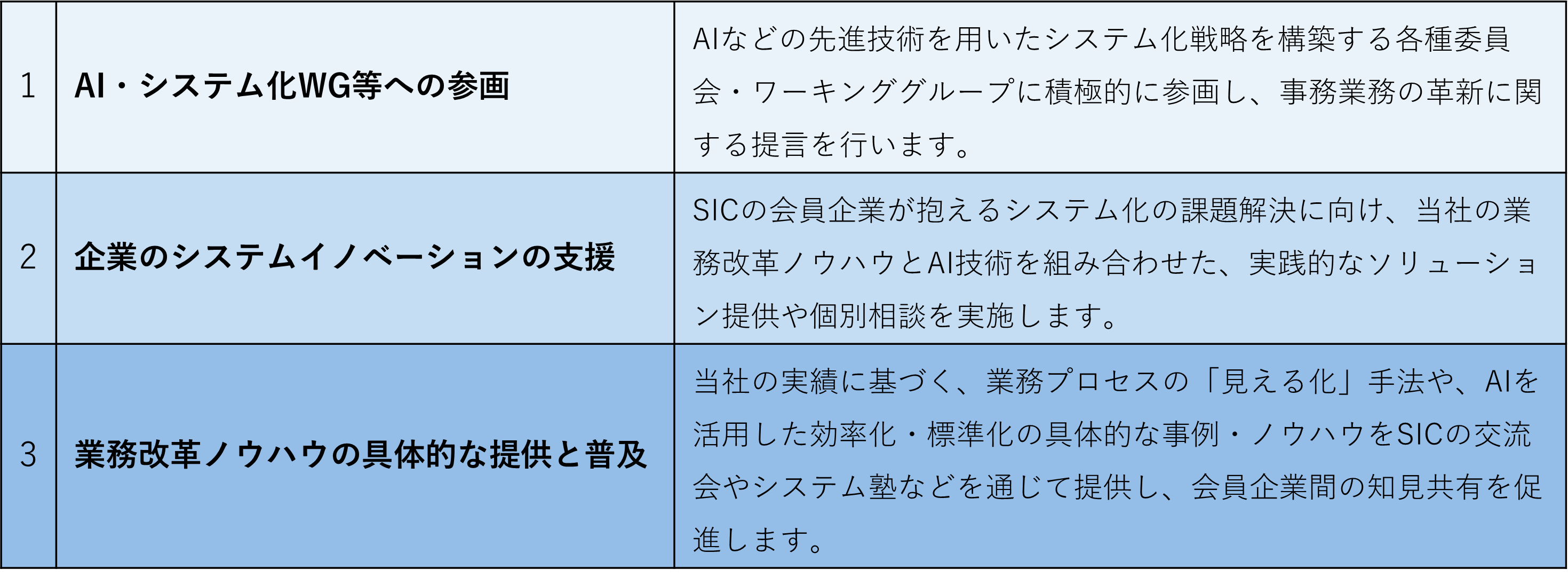 今後は、SICの活動を通じて、以下の取り組みを推進してまいります。