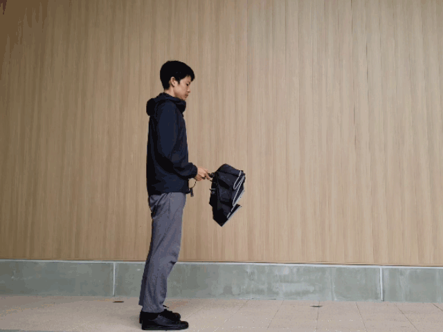 既存のユーザー様から「もっと大きいサイズがあったらいい」というご要望を多くいただきました。そこで、直径を既存の102センチから120センチに。前作より18センチも大きくなった超広サイズで足元までしっかり雨から守ります。バックを持っても濡らさず、通勤が快適です。