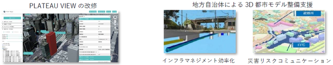 具体的には、効率的なデータ整備手法の確立、データ仕様の拡張、社会的要請の高いテーマや先進技術を取り込んだユースケースの開発等に取り組むとともに、地方公共団体による3D都市モデルの整備を支援していきます。