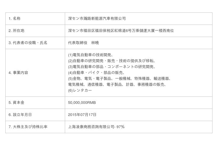 4. 深セン市瀚路新能源汽車有限公司の概要