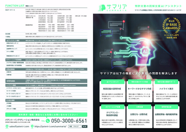 今年の4月より提供を開始した、「知財担当者」「弁理士」に寄り添ったAIアシスタントサービス「サマリア」について