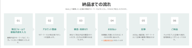 <サグーワークスを利用した記事発注から納品までの流れ>