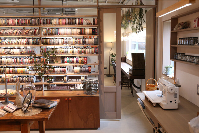 リボンショップスペース、ワークショップスペース、2023年10月29日(日)に本格オープンしたばかりのカフェスペースという3つの要素を兼ね備えており、この空間が手芸愛好家の方々の交流の場になったり、リボンをきっかけに生まれた繋がりが、面白い企画やビジネスなどワクワクする方に発展していくことが私たちの願いです。