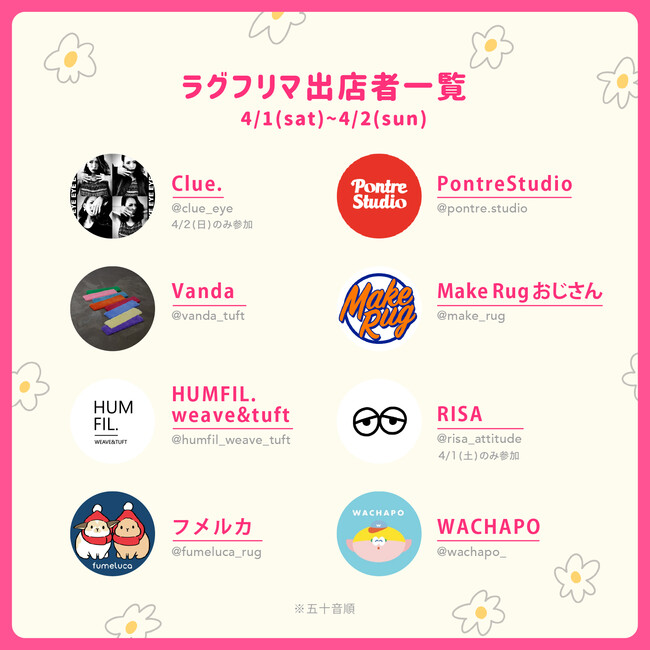 2日間で計8組の豪華タフティングアーティストがご出店予定です。