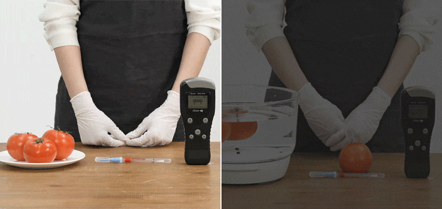 洗いにくいトマトでは洗浄前が808に対し、洗浄後は驚きの9という一桁台。