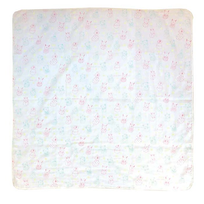 内容:黄色で描かれたヒヨコやひつじ、クローバーのイラスト部分には蛍光インクが使われており、暗い場所で光ります。暗い室内でもすぐ探しやすくて便利です。蛍光インクは、赤ちゃんが舐めても安心なインクを使用。柔らかい肌ざわりで、吸水性のある綿100%のガーゼです。