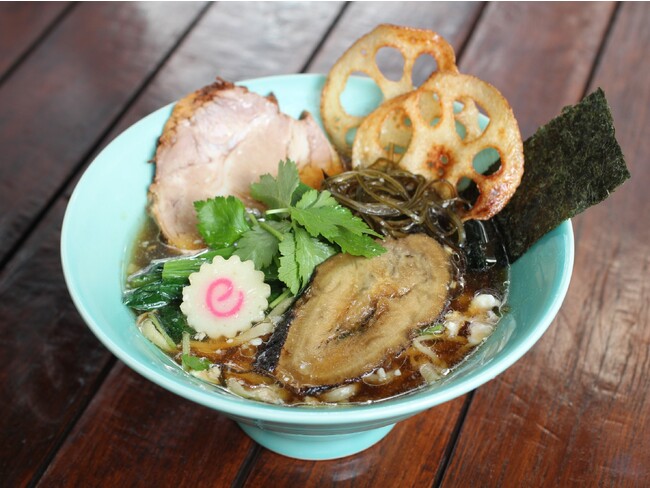 岩崎氏は千葉県八千代市の「仏蘭西料理貝殻亭」などの飲食店を運営するなか、旨味成分の塊である「ラーメン」の魅力に取りつかれ自らラーメン道場に通った後、数々の拘りラーメンをリリース。やちよ道の駅食堂(千葉県八千代市/道の駅やちよ内)、牧の原テーブルレストラン(千葉県印西市/牧の原モア内)、成田門前食堂(千葉県成田市/なごみの米屋門前店内)などでラーメンを提供するほか、「麺屋貝殻亭」の屋号で地域イベントへのキッチンカー出店を行っています。