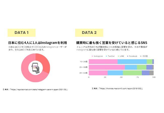 建築物を購入する際にInstagramの投稿を参考にしている人が多いというデータから、多くのフォロワーに支持をされている不動産に特化したインフルエンサー自社のサービスや商品を紹介されることで見込み客の獲得に繋がります。