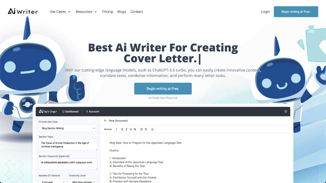 4)AI Writer文章作成サービス(英語サイト)でビジネス効率化を!
